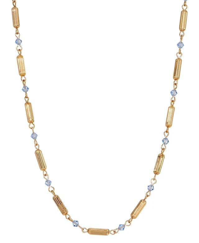 2028 Silver-Tone Blue Rose Bead Drop Necklace