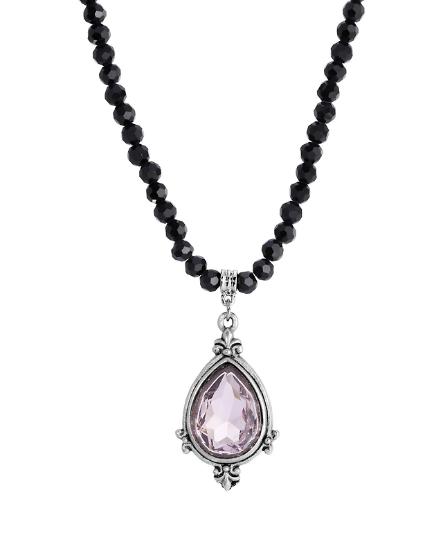 2028 Pink Glass Teardrop Crystal Accent Necklace