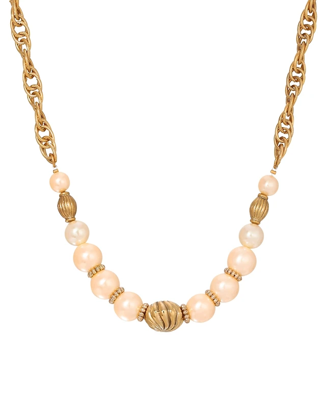 2028 Faux Cultivated Pearl Gold-Tone Circle Station Necklace