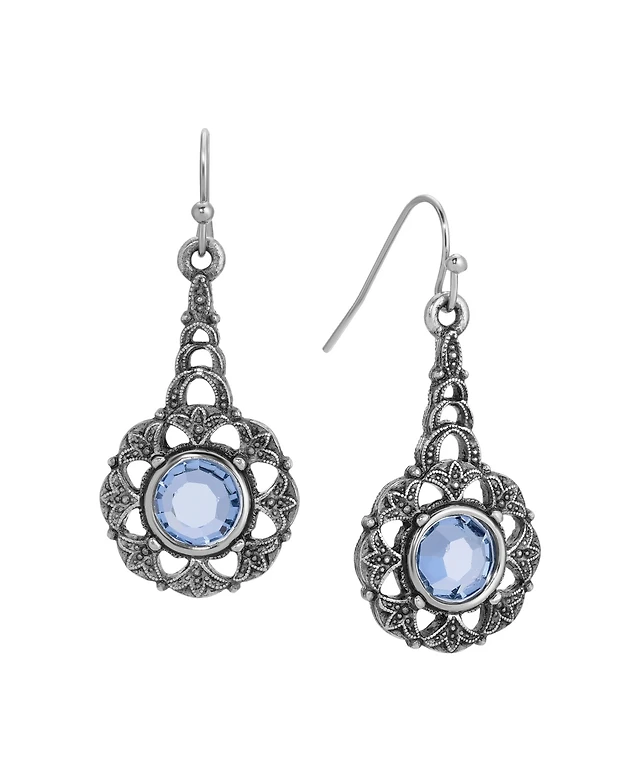 2028 Pewter Tone Lt. Blue Moonstone Drop Earrings