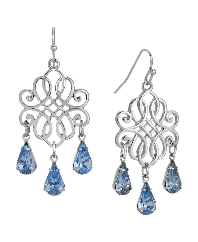 2028 Silver-Tone Crystal Teardrop Swirl Earrings