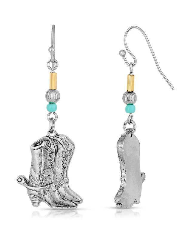 2028 Silver-Tone and Imitation Turquoise Accent Western Boots Drop Earrings