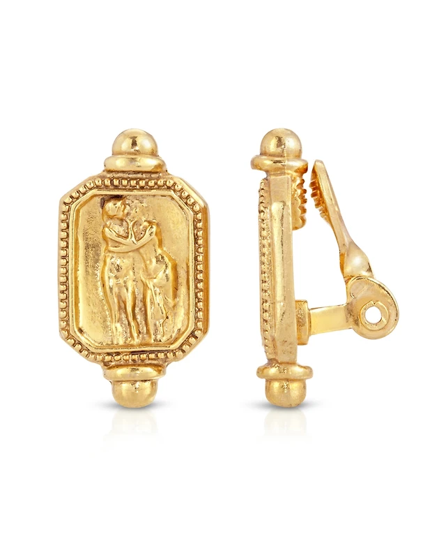 2028 Gold Tone Clear Crystal Rectangle Crystal Floral Clip Earring
