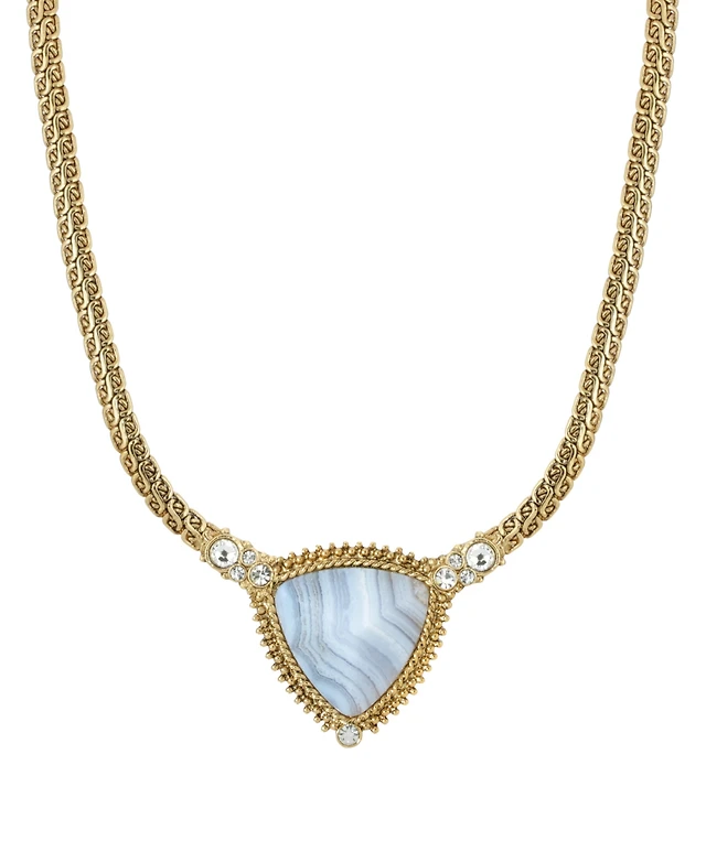 2028 Gold-Tone Semi Precious Triangle Stone Necklace
