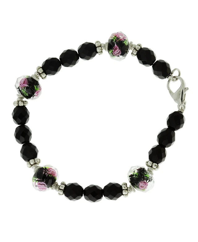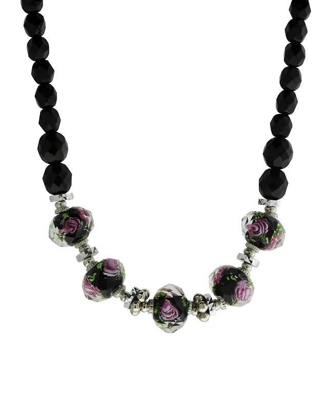 2028 Women's Silver Tone Black Bead Crystal Stone Necklace