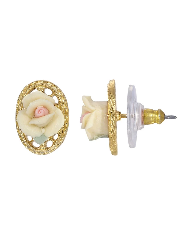 2028 14K Gold Plated Rose Oval Lattice Button Earrings