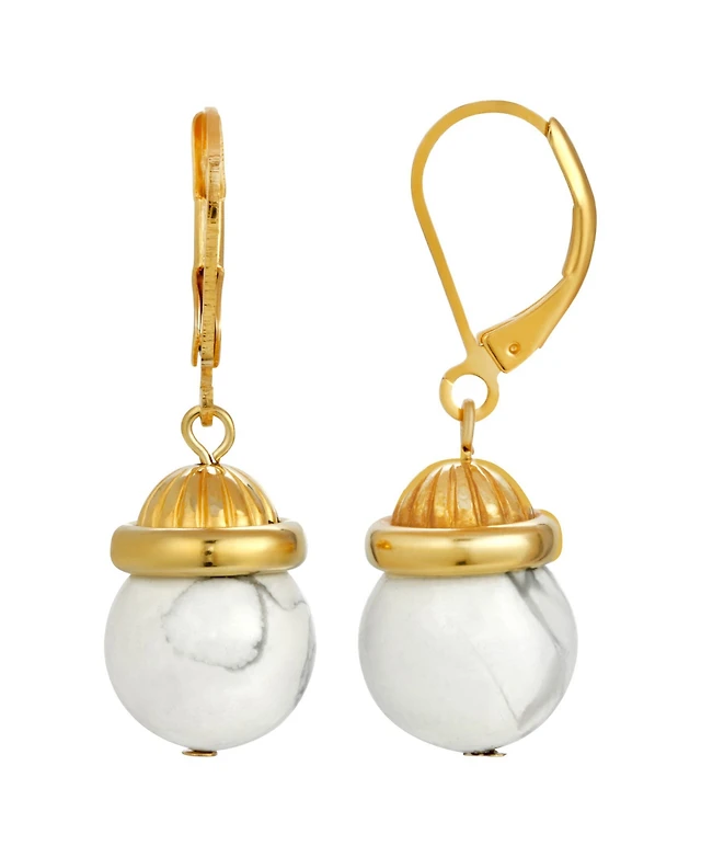 2028 Women's Gold-Tone Round Green Drop Earrings