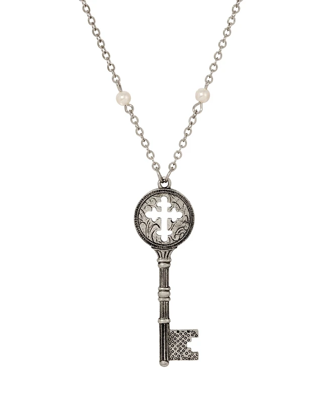 Symbols of Faith Imitation Pearl Key Cross Necklace