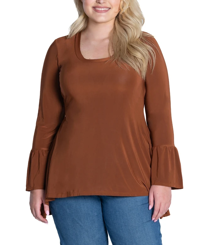 24seven Comfort Apparel Plus Short Sleeve Split Shoulder Top