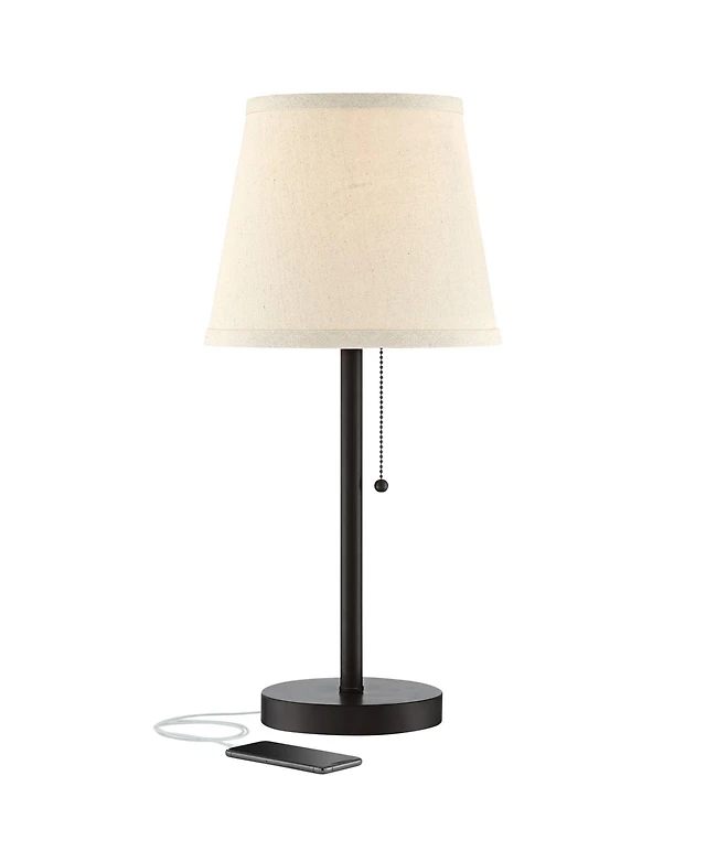 Colby Modern Desk Table Lamp with Hotel Style Usb and Ac Power Outlet in Base 21" High Brushed Nickel White Linen Drum Shade for Living Room Bedr