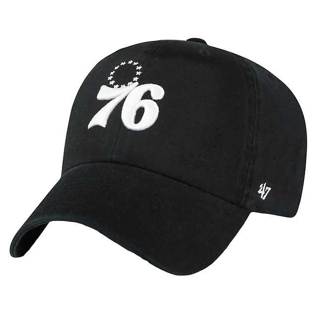 Men's '47 Black Philadelphia 76ers Core Logo Clean Up Adjustable Hat