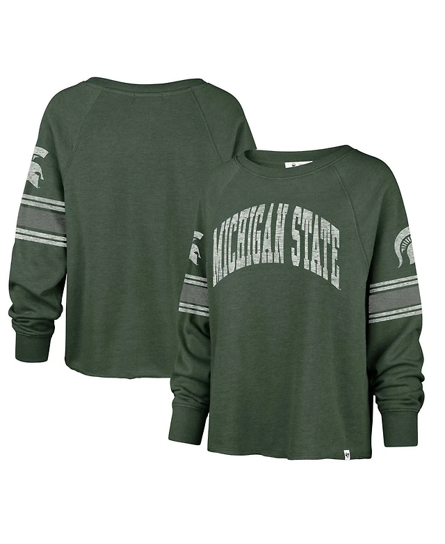 Women's '47 Brand Green Distressed Michigan State Spartans Allie Modest Raglan Long Sleeve Cropped T-shirt