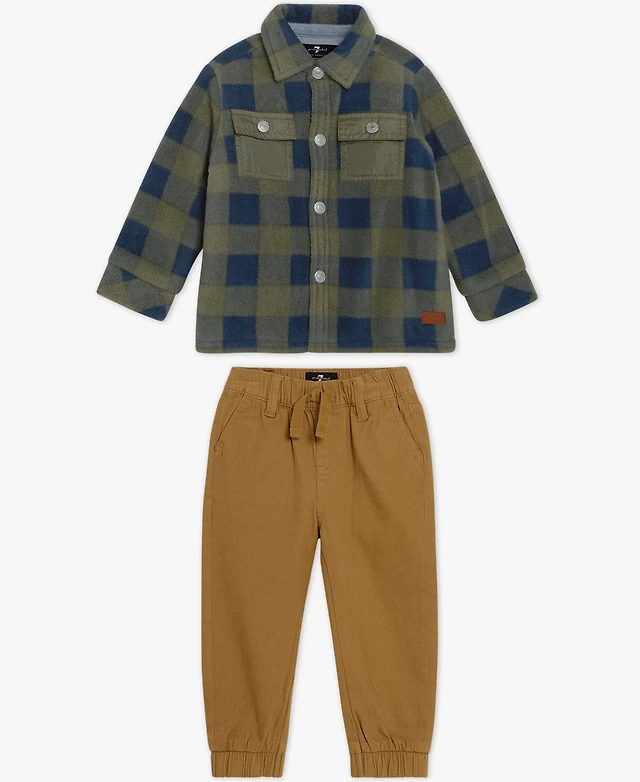 7 For All Mankind Baby Boys 2-Piece Denim Shirt and Joggers Set