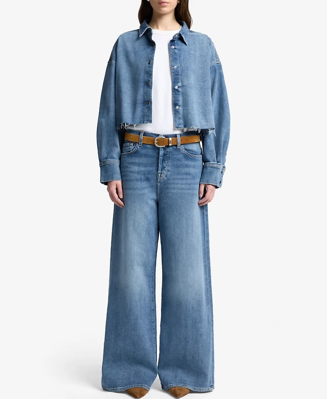 7 For All Mankind Cropped Denim Shirt Jacket