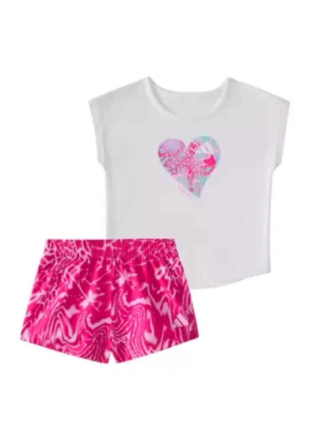 Boys 4-7 Two Piece Short Sleeve Graphic Cotton Heather T-Shirt and 3-Stripe Shorts Set