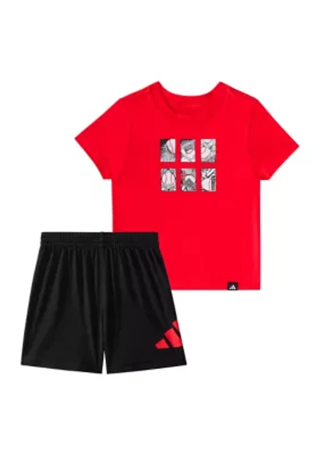 Toddler Boys Two-Piece Short Sleeve Graphic Cotton Tee & 3-Stripe Set