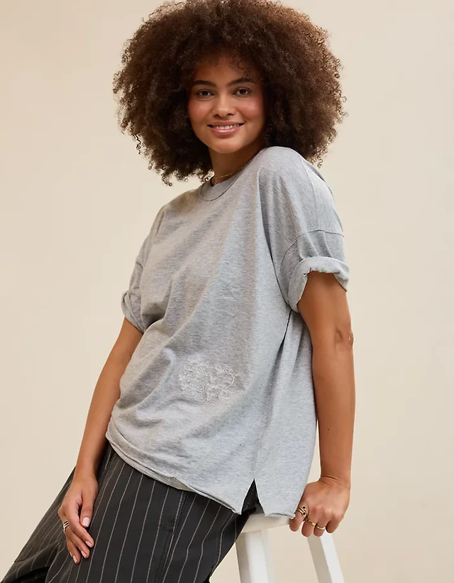 Aerie Embroidered Scalloped Pullover