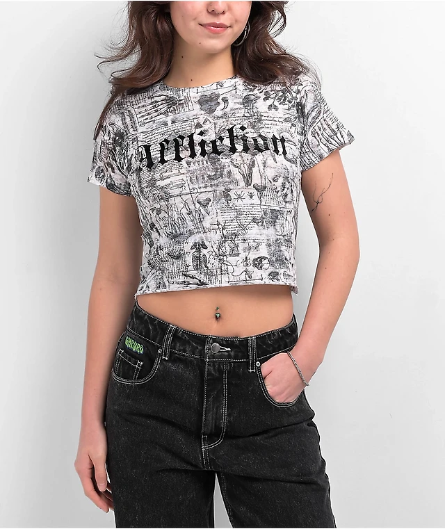 Affliction Horror Swarm Black Long Sleeve Crop T-Shirt