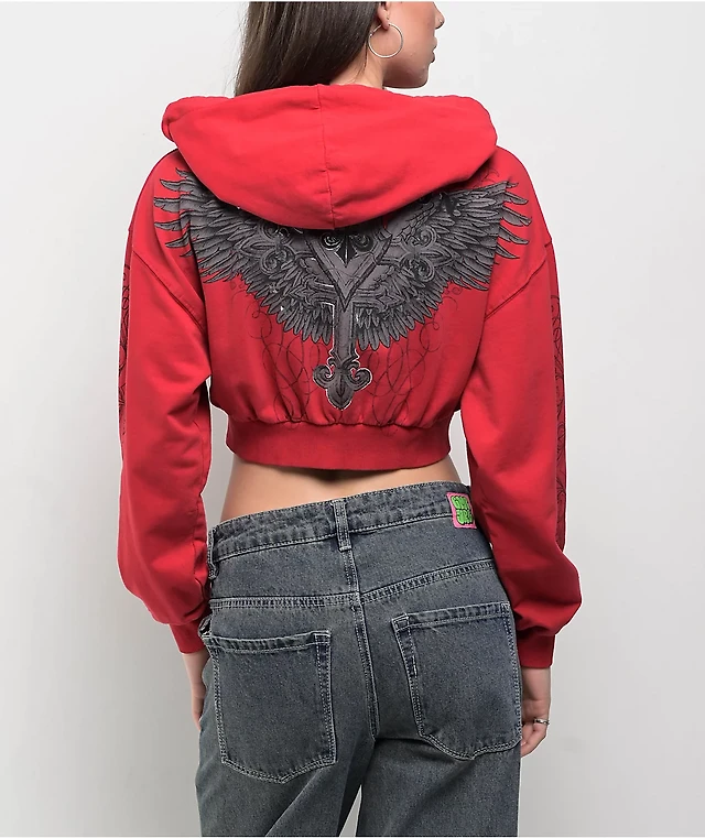 Affliction Toxic Wrath Red Long Sleeve Crop T-Shirt