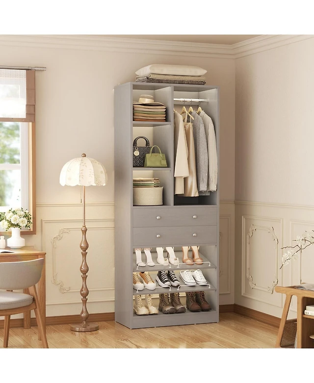 Aheaplus 28'' Freestanding Closet Storage System with 2 Drawers, Tower Hanging Rod, Shelves & Adjustable Shoe Racks