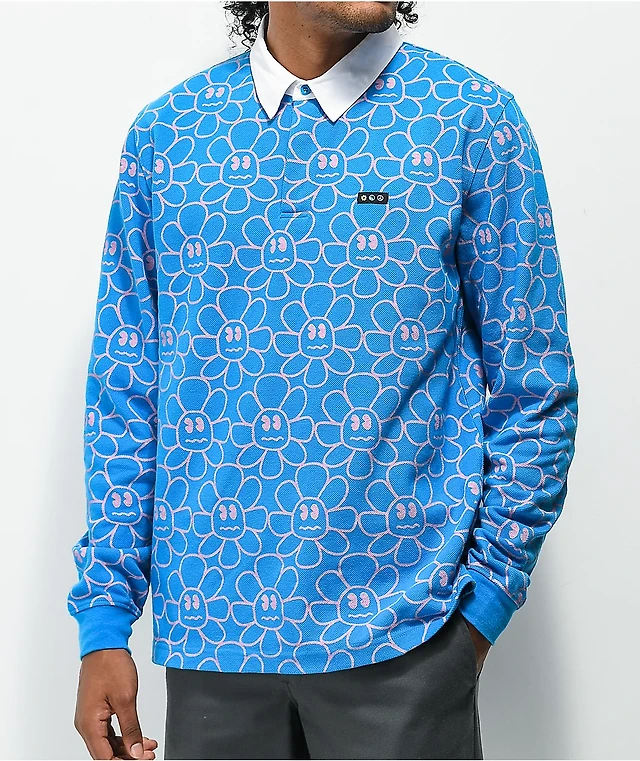 A.LAB Double Daisy Pink & Blue Short Sleeve Button Up