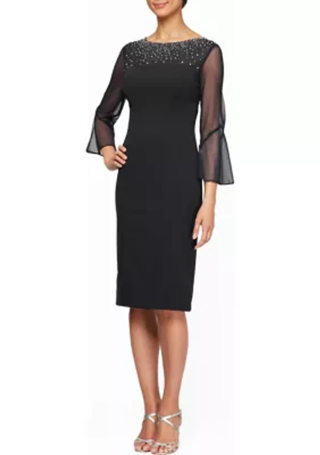 Alex Evenings Stretch Taffeta 3/4 Sleeve Hip Embellishment Sheath Dress