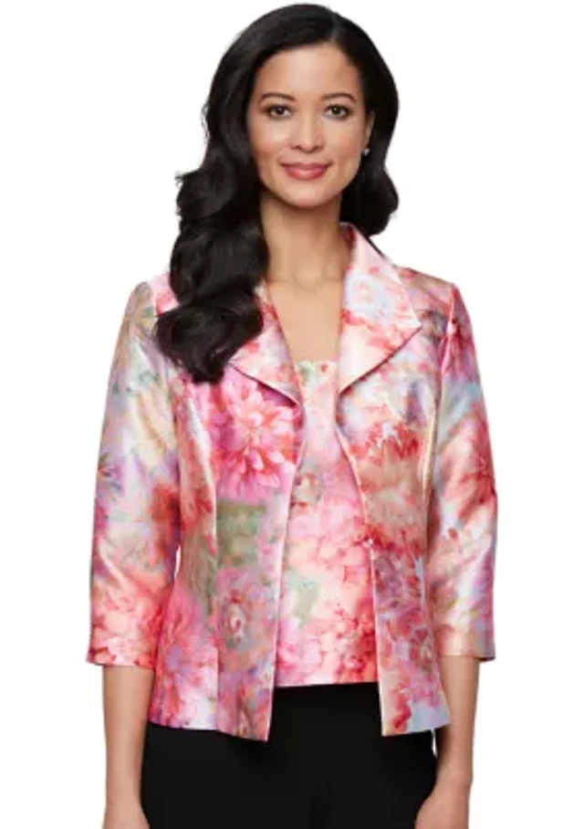 Alex Evenings Plus Size 3/4 Sleeve Printed Twinset