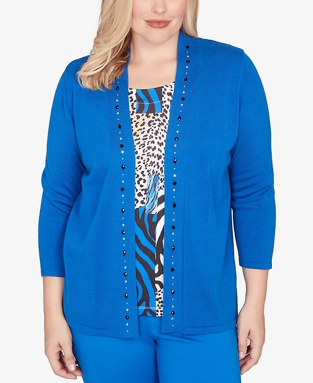 Alfred Dunner Petite Barcelona Vertical Animal Print Two One Sweater