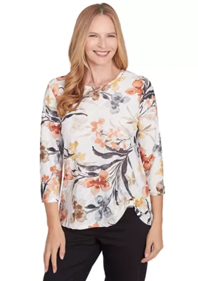 Petite 3/4 Sleeve Falling Flowers Knit Top