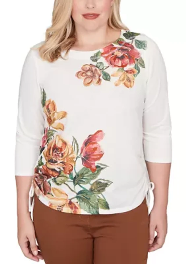 Plus Sunset Canyon Allover Floral Embroidery Top
