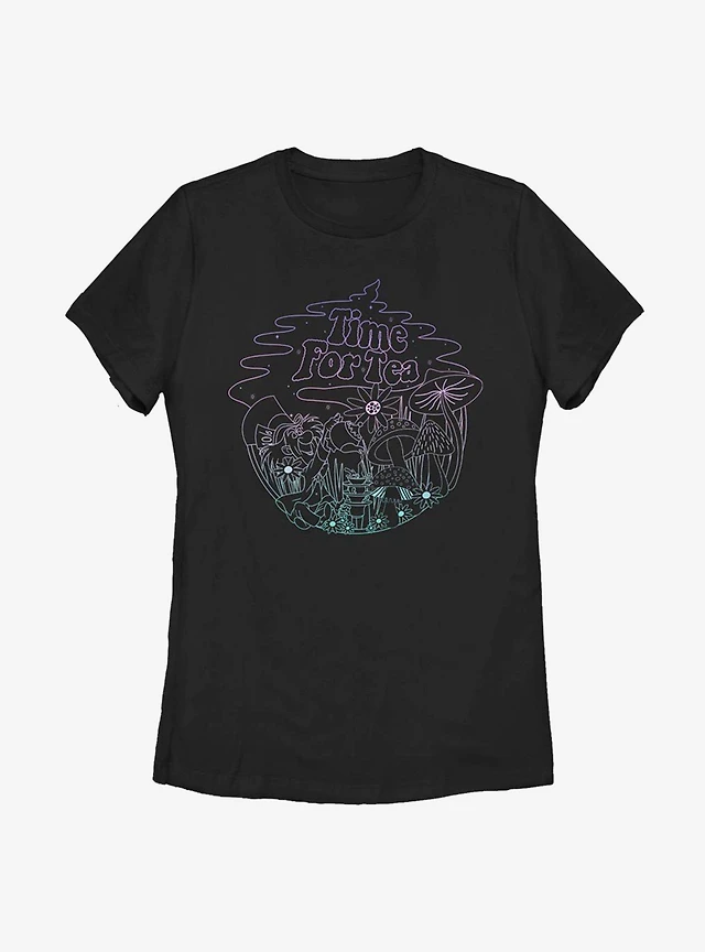 Disney Alice Wonderland Hatter Time For Tea Outline Womens T-Shirt