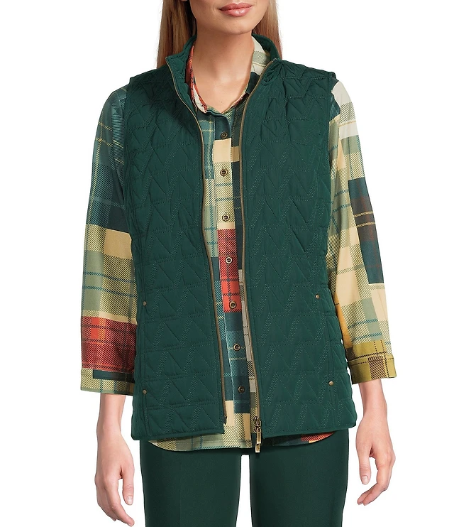 Allison Daley Petite Chevron Sleeveless Two Way Zip Up Woven Quilted Vest