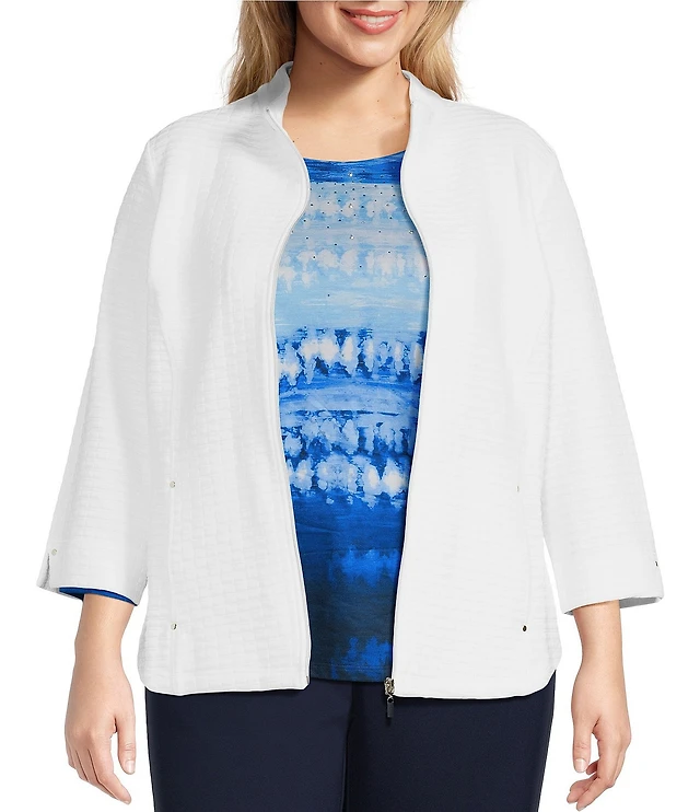 Allison Daley Plus Size 3/4 Sleeve Stand Collar Zip Front Jacket