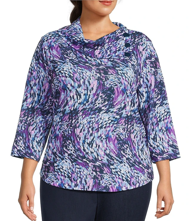 Allison Daley Plus Wavy Rain 3/4 Sleeve Cowl Neck Sweater