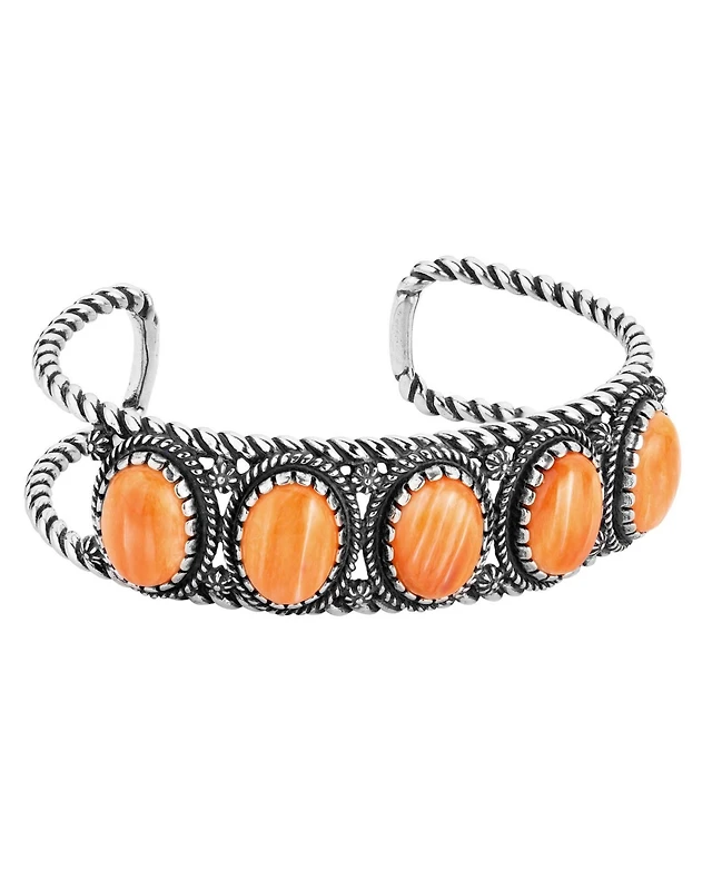 American West Sterling Silver Women's Link Bracelet Oval Orange Spiny Oyster Gemstone Small - Large