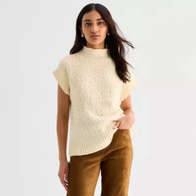 a.n.a Tall Womens Split Tie Neck Long Sleeve Pullover Sweater
