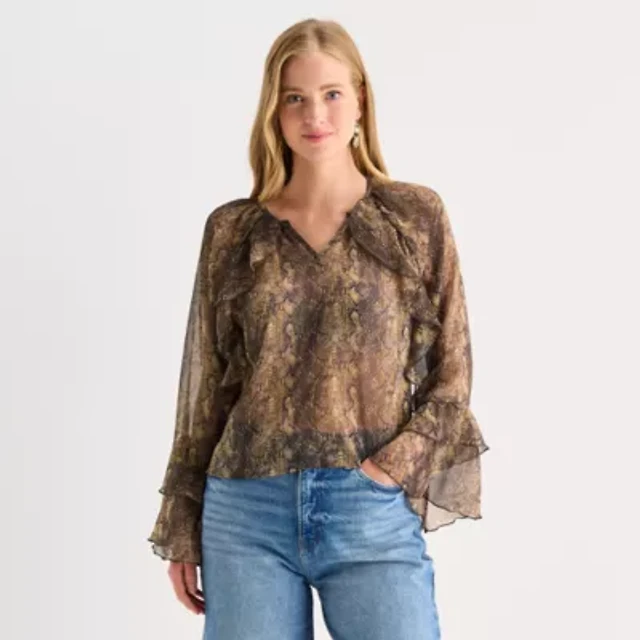 a.n.a Ruffle Womens V Neck Long Sleeve Tie Plus Cardigan