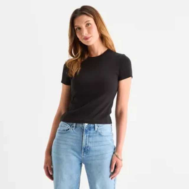 a.n.a Plus Womens Crew Neck Short Sleeve Pullover Sweater