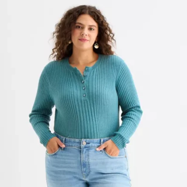 a.n.a Plus Womens Split Crew Neck Long Sleeve Pullover Sweater