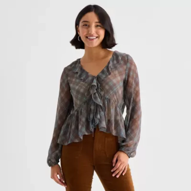 a.n.a Womens Split Tie Neck Long Sleeve Blouse