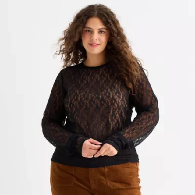 a.n.a Lace Womens Crew Neck Long Sleeve T-Shirt
