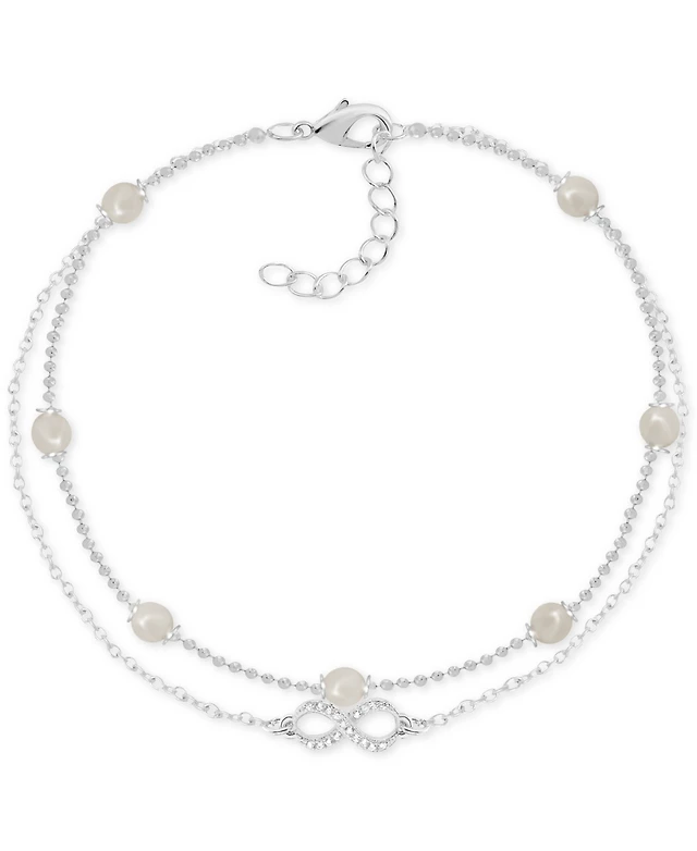 And Now This Imitation Pearl & Crystal Infinity Double Row Ankle Bracelet in Silver-Plate
