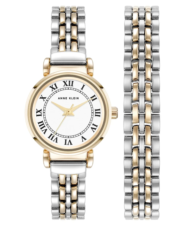 Anne Klein Women's Quartz Signature Round Roman Numeral Two-Tone Alloy Metal Watch, 29mm