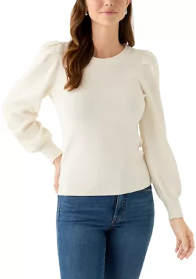 Plus 3/4 Balloon Sleeve Boucle Knit Top