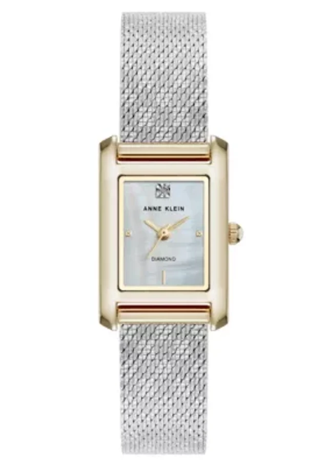 Anne Klein Women's Quartz Petite Diamond Dial Two-Tone Stainless Steel Mesh Watch, 20mm