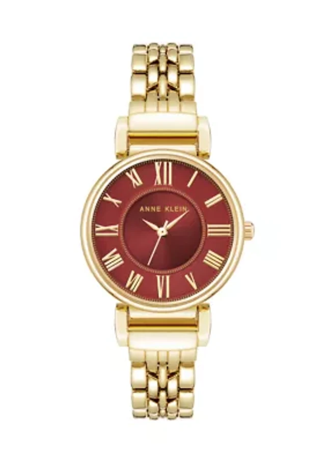 Anne Klein Women's Classic Gold-Tone Metal Alloy Easy To Read Pink Dial Watch, 26mm