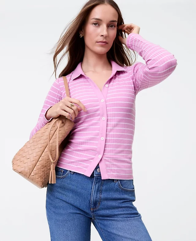 Ann Taylor Weekend Collection Striped Relaxed Perfect Shirt Blush Haze Women's