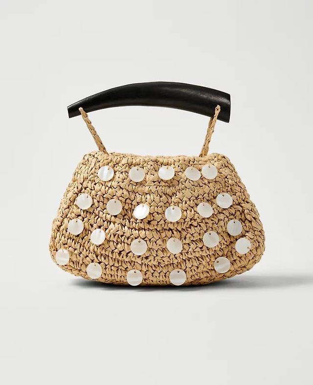 Ann Taylor Pearl Embellished Raffia Clutch Handbag Natural Women's