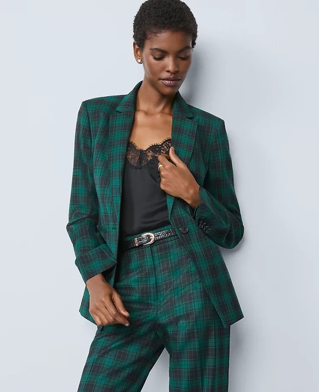 Ann Taylor The Notched One Button Blazer Plaid Ponderosa Pine Women's
