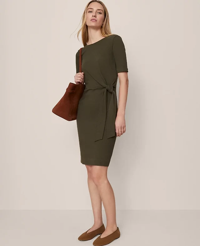 Ann Taylor Petite Crew Neck Twist Sheath Dress Winter White Women's